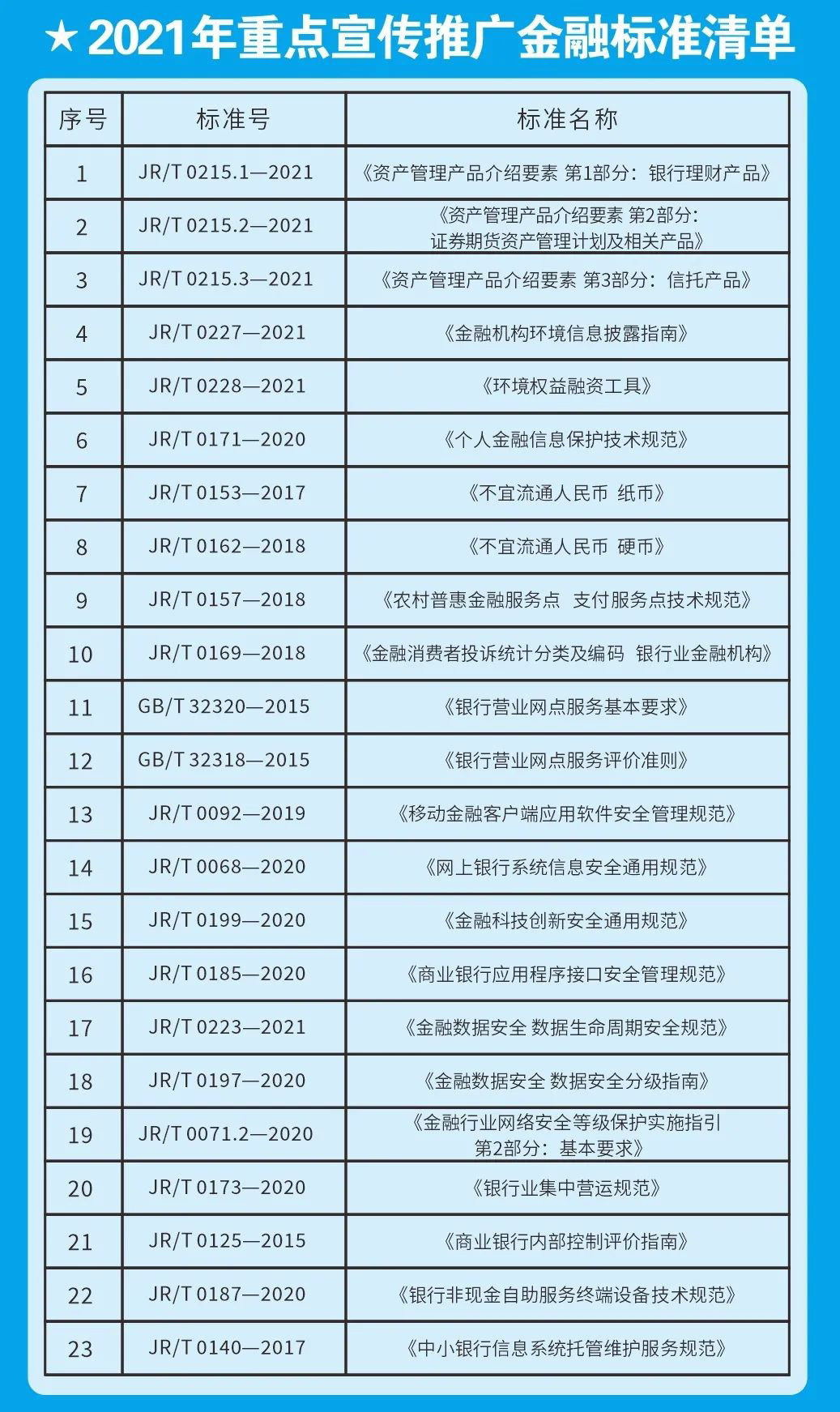 金融標準是金融業(yè)健康發(fā)展的技術支撐,是金融業(yè)治理體系和治理能力現(xiàn)代化的基礎性制度,中國人民銀行宣傳推廣重點金融標準,切實做好金融從業(yè)人員及消費者金融標準化宣教和普及工作,在行業(yè)內(nèi)營造對標達標的良好氛圍,引導消費者使用達標服務與產(chǎn)品,進一步維護消費者合法權益。
